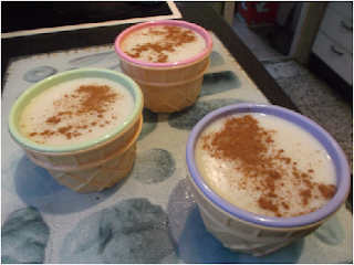Al igual, que hasta las cantidades de ingredientes, son copia de la receta original y los ingredientes son prácticamente idénticos, la realización de la receta sigue siento copia de la original, si la repito, ya os contare mis adulteraciones. Siguiendo los consejos de la receta original he calentado el aceite, la cascara del limón y los granitos de anís a máxima potencia durante 3 minutos y he dejado reposar para no quemarme. A continuación he colado el aceite con un colador, para eliminar los granitos de anís y la piel de limón. En un recipiente apto para el microondas colocamos el aceite colado, el azúcar, la harina, tamizándola (pasándola por un colador para evitar grumos) y la leche. Batimos con las varillas y dejamos reposar unos 5 minutos. Volvemos a batir, si notamos que hay grumos podéis utilizar la batidora (en mi caso no fue necesaria). Se introduce nuevamente en el microondas durante 4 minutos a máxima potencia. Dejamos reposar un par de minutos para no quemarnos. Batimos de nuevo, con las varillas (o batidora si observáis grumos) y repartimos en recipientes individuales. Espolvoreamos con canela y dejamos enfriar. Una vez frio guardar en el frigorífico hasta la hora de servir. |